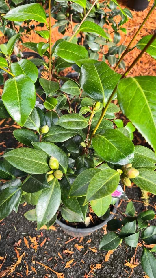 Spectacular, semi-double peony form blooms displaying light pink petals edged in white and streaked with deep pink. Flowers make a great contrast with the glossy, dark green foliage.